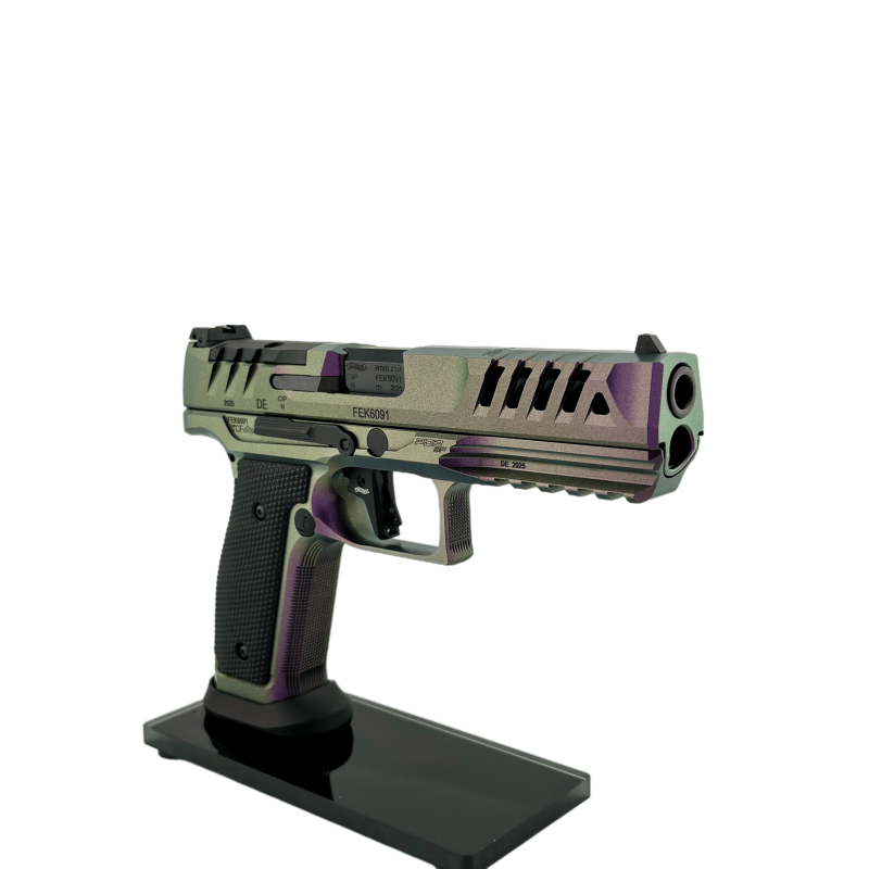 Il intègre des éléments orientés performance : détente Dynamic Performance, texture de poignée Performance Duty, plateforme Optics Ready, magwell optimisé et poignées enveloppantes pour un maintien sûr. Le canon de 5" complète cette configuration pensée pour la précision.