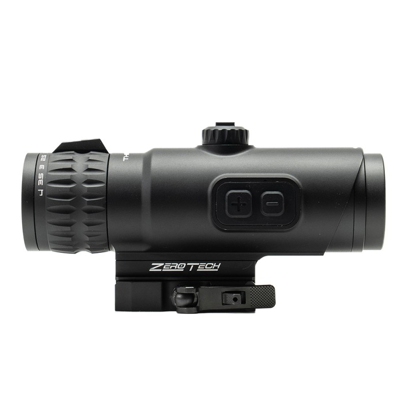 Le viseur prismatique 1x20mm avec réticule ZT gravé offre une acquisition rapide et précise.13 niveaux de luminosité dont 3 compatibles vision nocturne, autonomie jusqu’à 50 000 h.Réglages 1 MOA/clic avec plage de 90 MOA en dérive/élévation.Compact et robuste (≈ 8,8 oz), lentilles multicouches et fonctionnement de -20 °C à +70 °C.